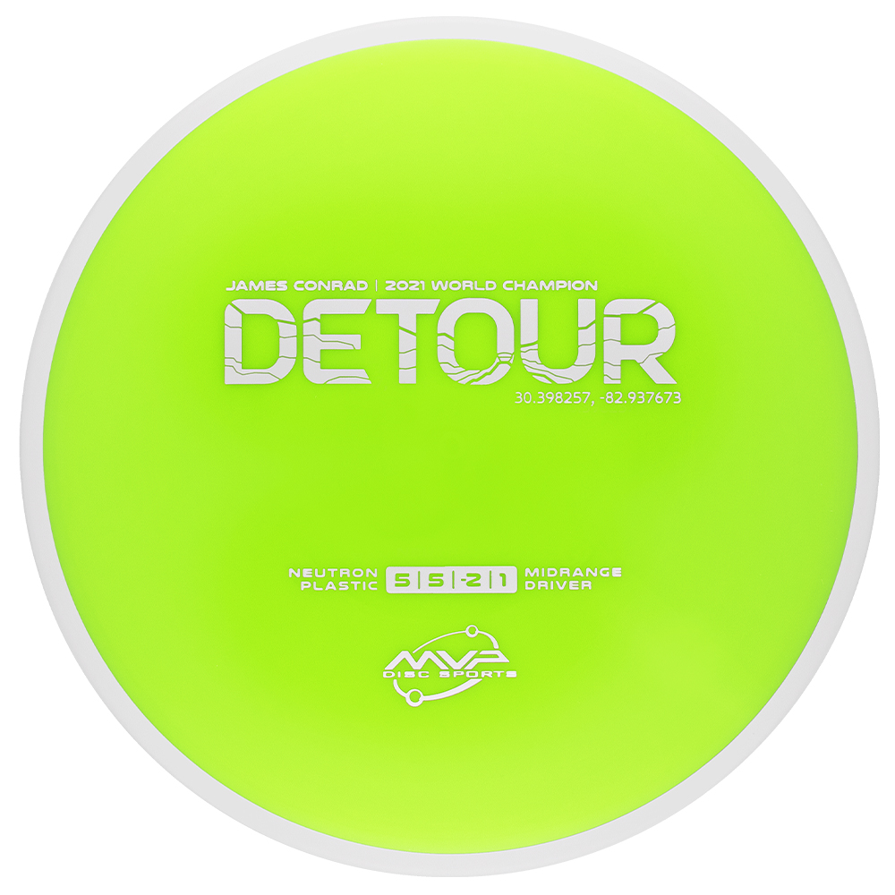 Fitting perfectly between the Axiom Hex and MVP Uplink, the newest addition to the James Conrad lineup slides in with flight numbers of 5 | 5 | -2 | 1. As a backhand dominant player, Conrad is known for his beautiful turnover lines, and the Detour excels at those long panning turnovers as well as easy hyzer-flips. Experienced players will find the Detour to be exceptionally easy to manipulate for a wide variety of shot shapes, while newer players will find a delightfully straight flier, perfect for learning the game.